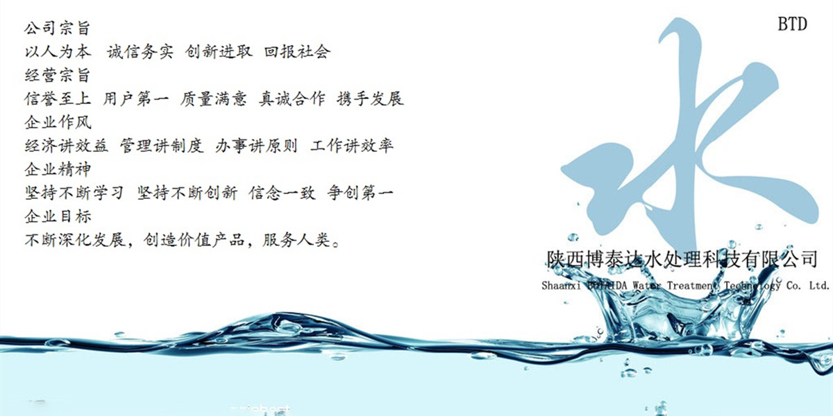 陜西博泰達(dá)水處理科技有限公司是西北一家集銷售、科研開發(fā)、安裝和技術(shù)服務(wù)為一體的高新環(huán)??萍夹推髽I(yè)。公司以科技創(chuàng)新為先導(dǎo),全心致力于人類環(huán)境保護(hù)和發(fā)展。以客戶滿意、打造完善服務(wù)為遵旨,為廣大用戶提供優(yōu)質(zhì)的水處理設(shè)備和空氣凈化系統(tǒng)。
